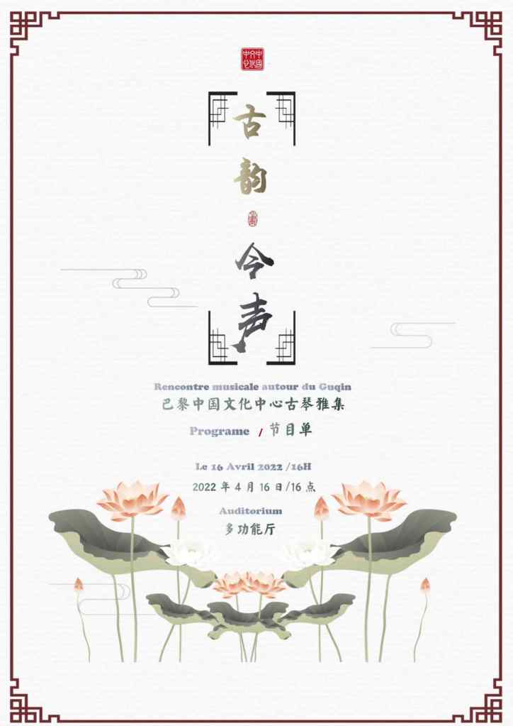Posted on 2022年4月23日2022年4月23日 by NingXin GuqinRencontre musicale autour du Guqin 2022 printemps 2022 Avril 16 Guqin Concert Share this: Share on X (Opens in new window) X Share on Facebook (Opens in new window) Facebook Like Loading... Related